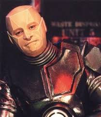 R1 Dynabot head mounted on chipwell suit in rockwell motor pool w/ demonhide sheild 38MDC with cross painted on it